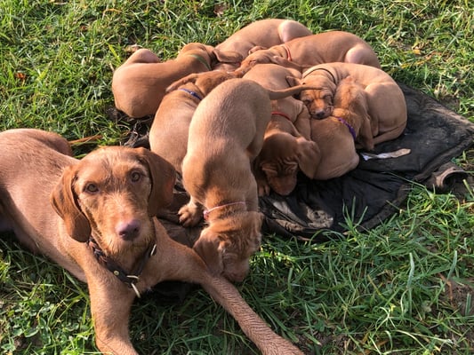 Ides hat heute Nacht 4 Rüden und 4 Hündinnen zur Welt gebracht.Mutter u die Kleinen sind wohlauf🥰